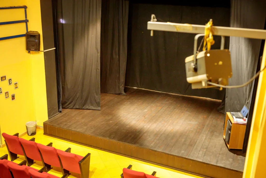 Misure palcoscenico (spazio scenico) : Larghezza mt 6 – Profondità mt 4 – Altezza 8,60